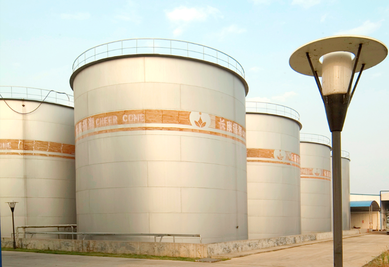 在長康實(shí)業(yè)廠區(qū),一排排高達(dá)15米的儲存罐并肩而立。在醬油、麻油、白醋、料酒等調(diào)味品的生產(chǎn)過程中,必須經(jīng)過儲存罐存儲,完成沉淀、發(fā)酵、品控等步驟,才能罐裝面市。