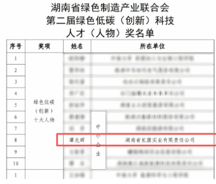 榮膺 “湖南省綠色低碳(創(chuàng)新)十大人物”